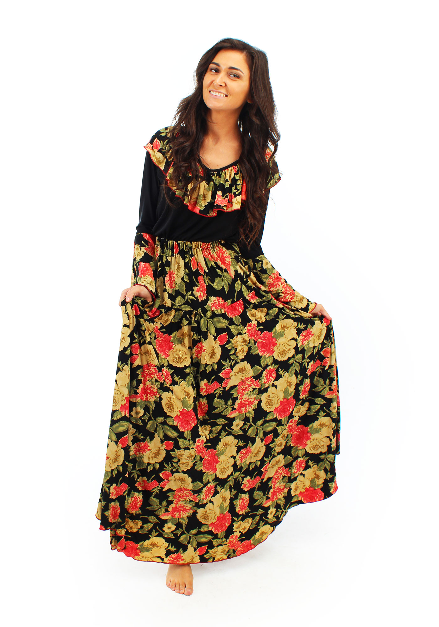 Вернуться назадОписание: Тёмное платье для образа цыганки добавит веселья мероприятию!