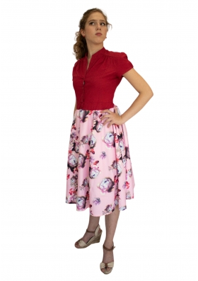 Описание: Ретро платье стиляги с розовой юбкой и цветами.